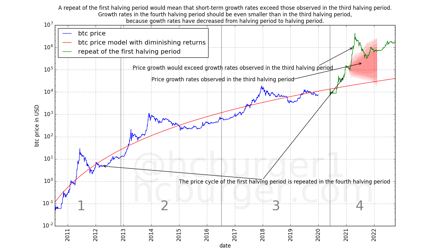 We can also ask ourselves if it is possible for history to repeat itself. E.g. could the price movements observed in the first halving period repeat themselves after the next halving?