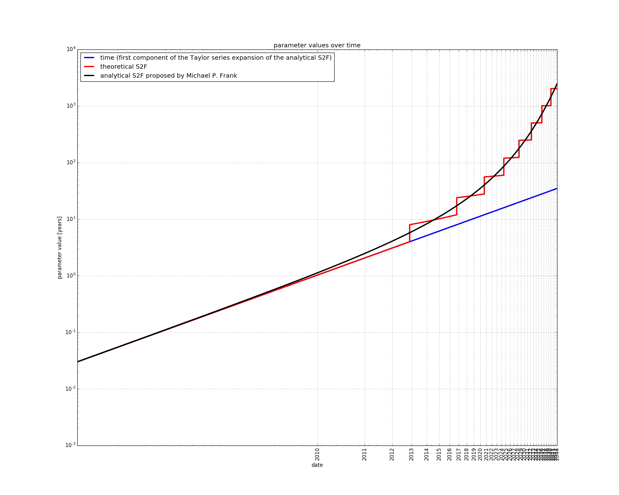 The fact that time is the first component of the Taylor-series expansion of S2F means that time is a good initial approximation of S2F. This time-based and S2F-based price models are therefore inherently linked.